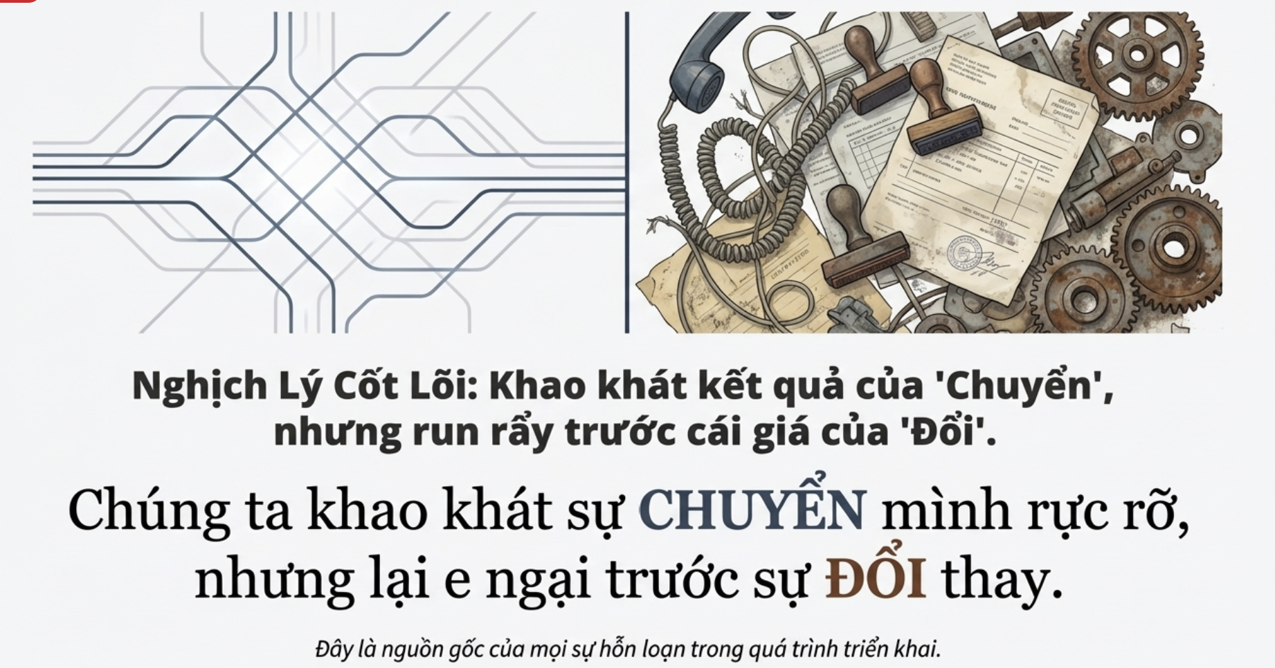 Nhưng có một thực tế trần trụi mà ít ai dám thừa nhận: Hầu hết chúng ta đang lao vào cuộc chơi công nghệ này với tâm thế mâu thuẫn. Chúng ta khao khát sự "Chuyển" mình rực rỡ, nhưng lại run rẩy và e ngại trước cái giá của sự "Đổi" thay.